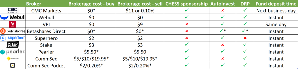 - Transfers: Transferring a portfolio between CHESS sponsored brokers is always free and can be done by filling out the form provided by the broker you’re moving to. Custodian brokers can be more restrictive, which could make it more difficult to transfer into or out of a custodian broker.