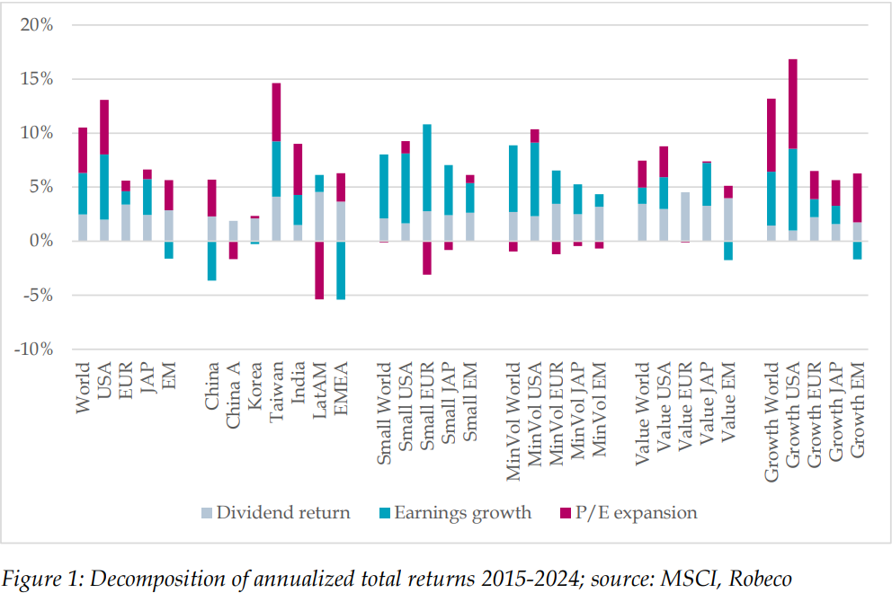 To provide further evidence to suggest that we should be sceptical of the spectacular performance of the US, Rasmussen (2025) found that companies being listed on US stock exchanges explains around 50% of the valuation gap between the US market and the international market, as opposed to better fundamentals. Blitz (2025) uses data from the start of 2015 to the end of 2024 and found that small-cap and low-volatility stocks had comparable fundamentals to US stocks but had a lower performance simply because they did not experience extreme rising valuations.
