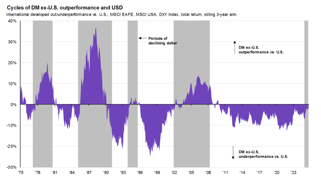 Instead of simply extrapolating the recent past, investors should prepare for the possibility that the coming decade will be very different from the last. A diversified portfolio that balances exposure across regions, sectors, and asset classes, ensures resilience against potential shifts in market leadership and macroeconomic conditions. By doing so, investors can position themselves to capture opportunities regardless of how the next decade unfolds.